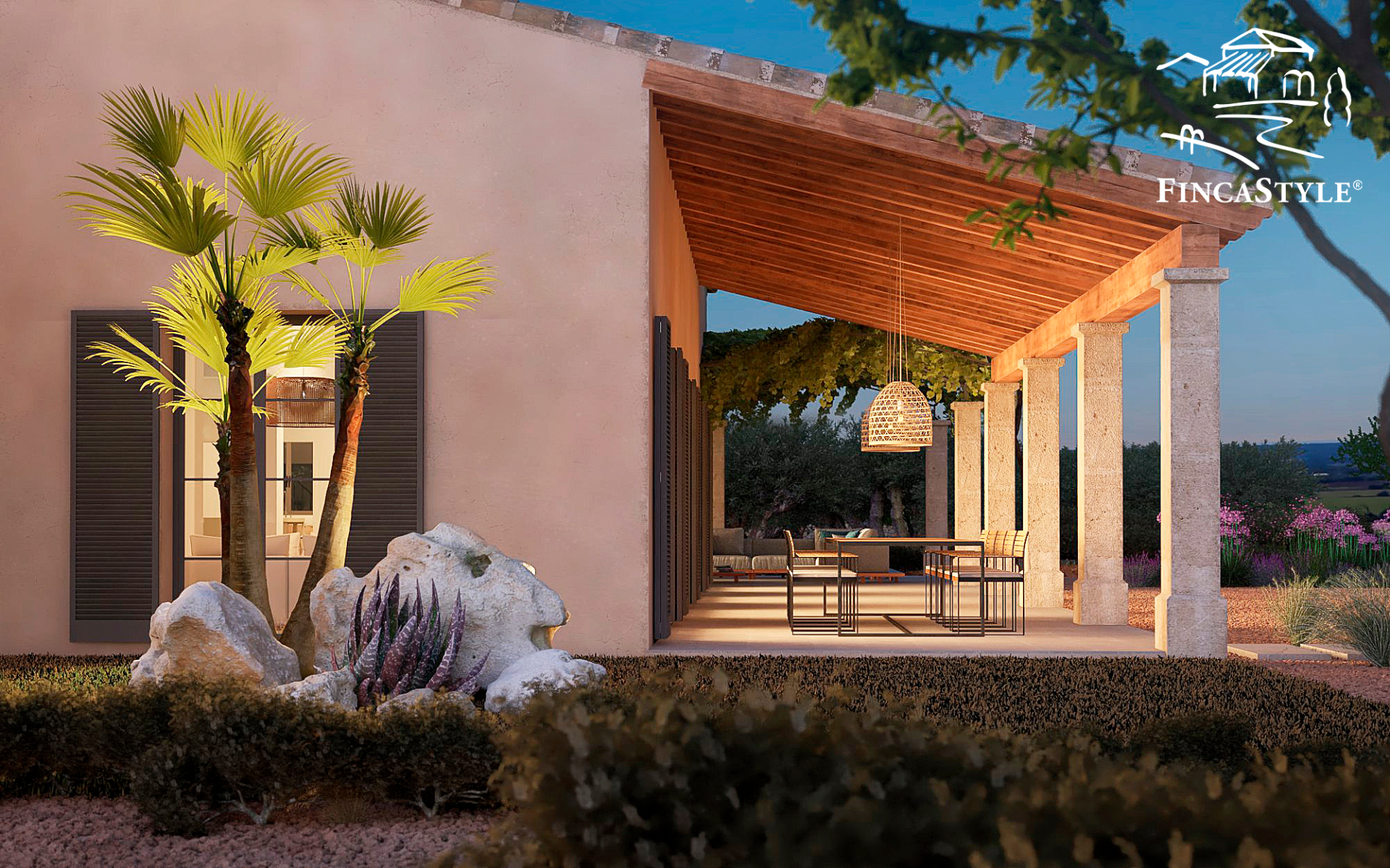 This FINCASTYLE® property, near the tranquil village of Ses Salines, in a central location to the natural beach of Es Trenc, impresses with its 18,000 m² plot and 315 m² constructed surface. Area with a magnificent view of the Mallorcan landscape. The finca can be reached via a private driveway.