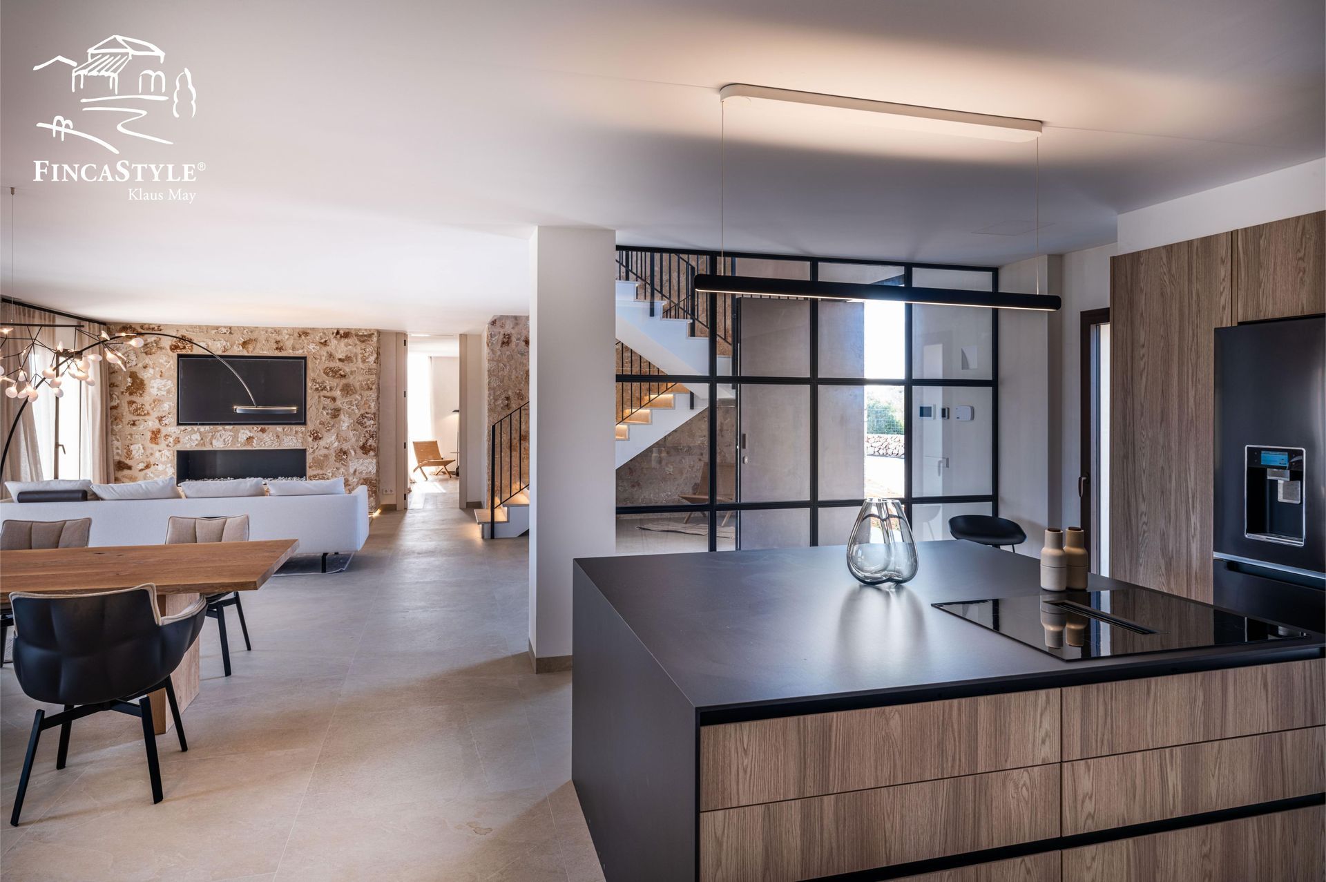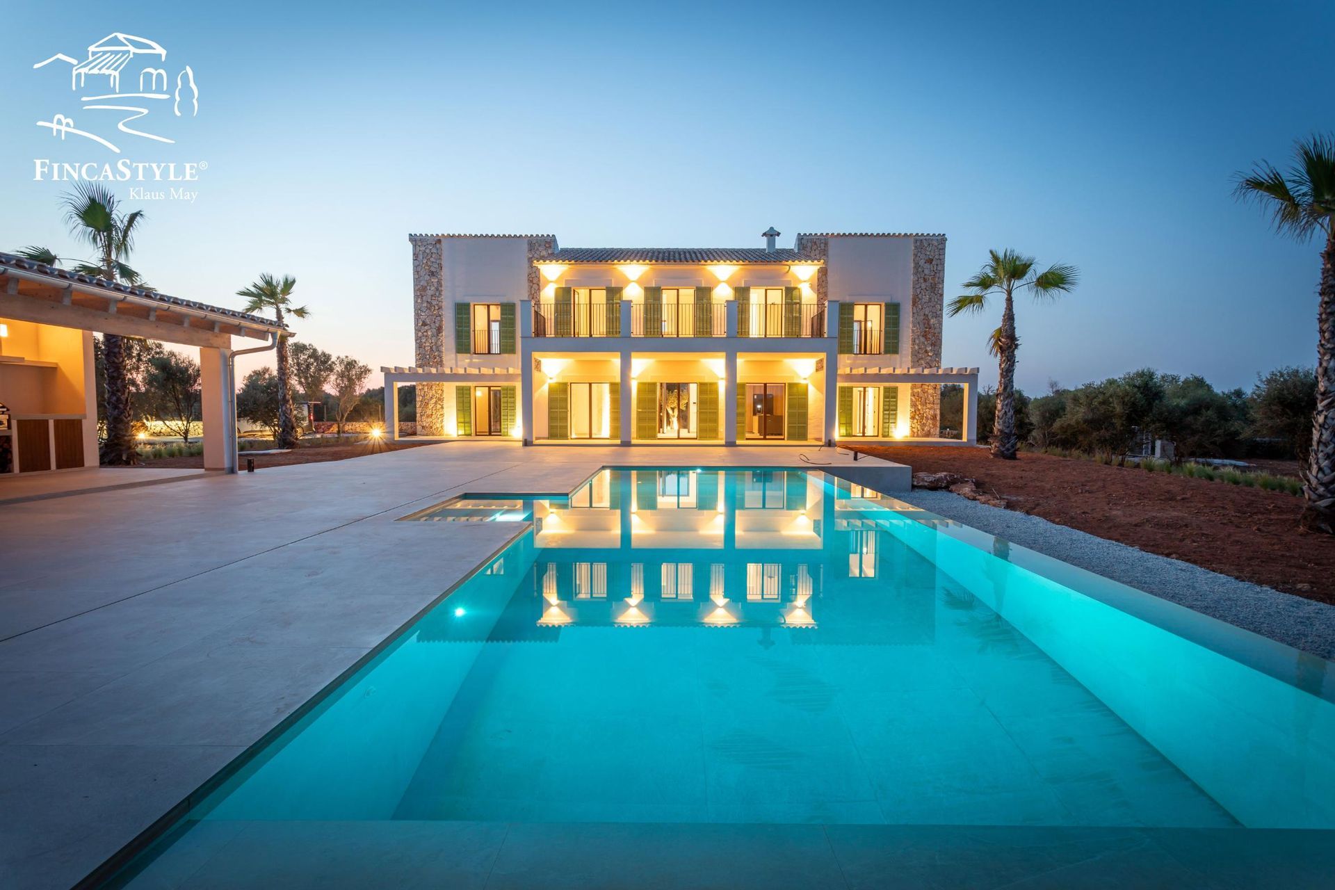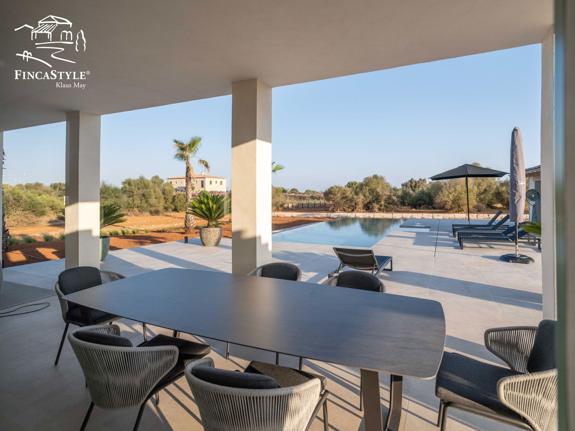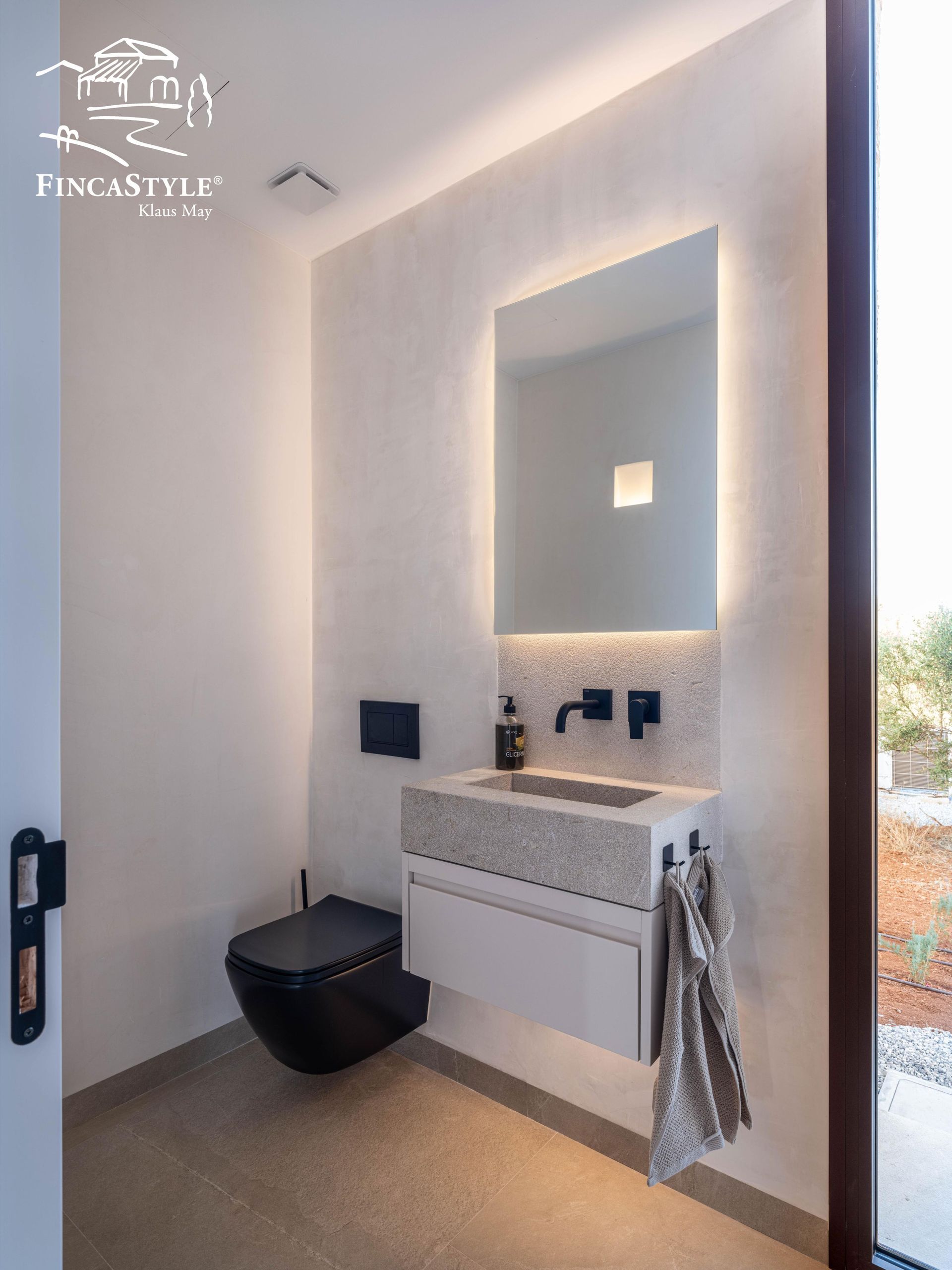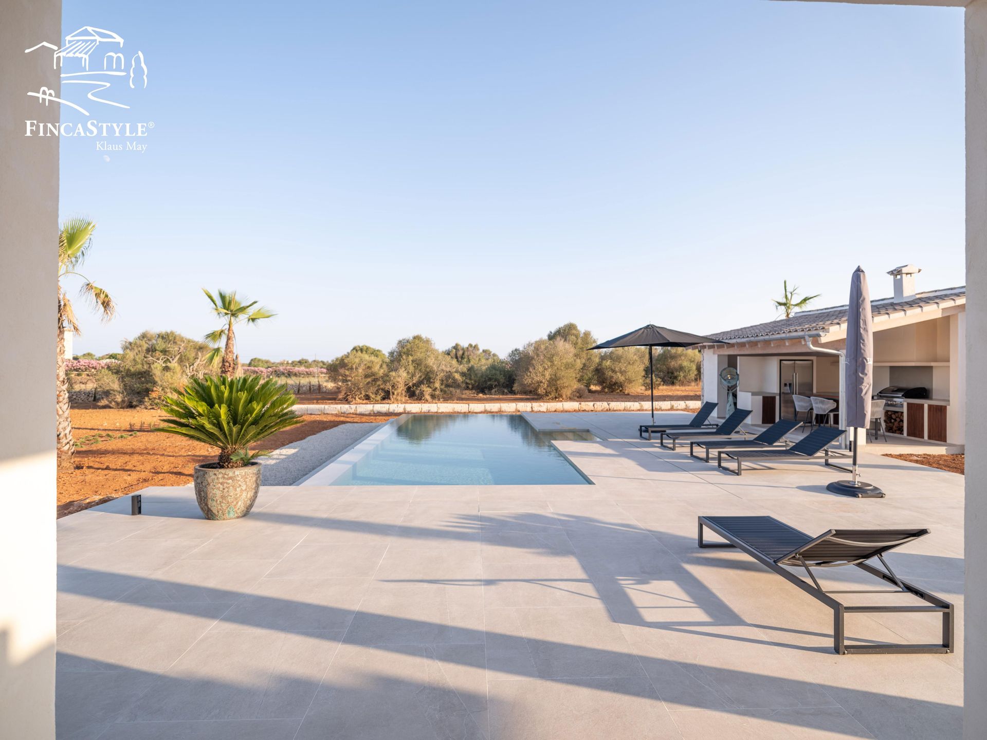 Ausgestattet in State of the Art, Solar, zentrale Klimaanlage und Fußbodenheizung mit Einzelraumsteuerung, Domotiksystem, LED-Lichtkonzepte, Salzinfinitypool, Einbauschränke, Videoüberwachung, Alarmanlage, Wärmepumpe, Außenmallorquinas, Natursteinelemente, machen dieses Fincastyle® Ensemble zu einer einzigartigen zeitlosen Traumfinca.