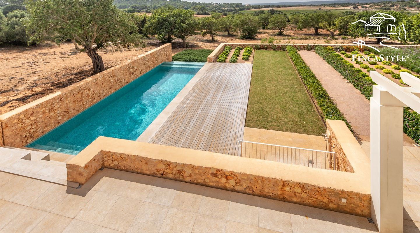 Diese moderne FINCA liegt in bezaubernder Landschaft zwischen Ses Salines und Santanyi und bietet einen fantastischen Weitblick über die Landschaft.