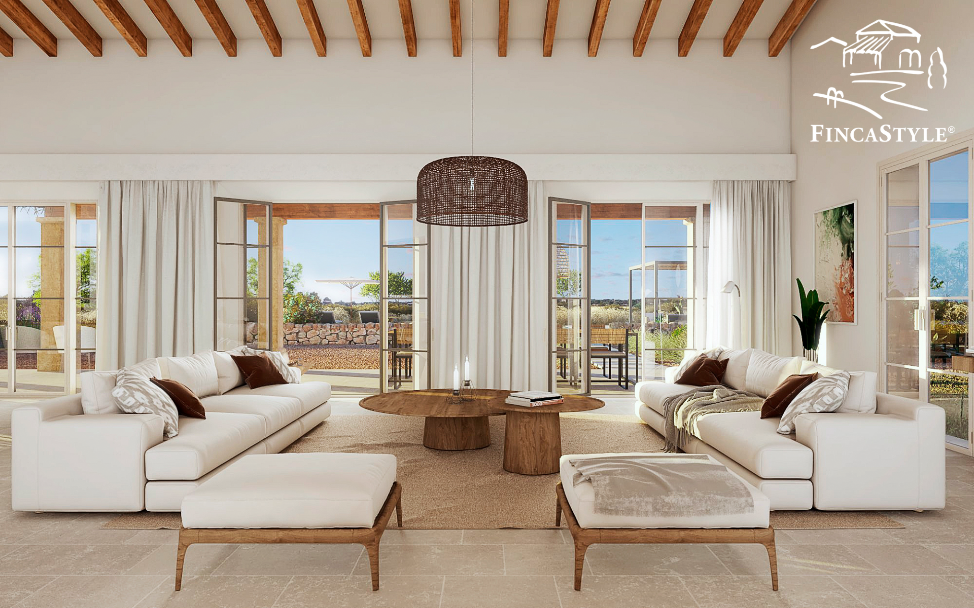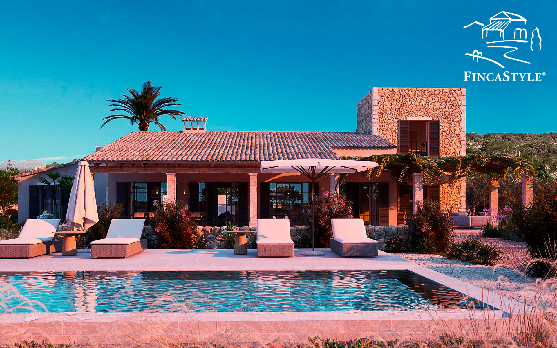 Der Außenbereich überzeugt durch seine zahlreichen, teils überdachten Terrassen und einem wunderschönen Innenpatio mit einem alten Olivenbaum. Auch die Gartenarchitektur mit hohen Palmen, 200 Olivenbäumen und vielen weiteren Zitrusbäumen und einem 11 x 3,7 m Pool laden zum Verweilen ein.