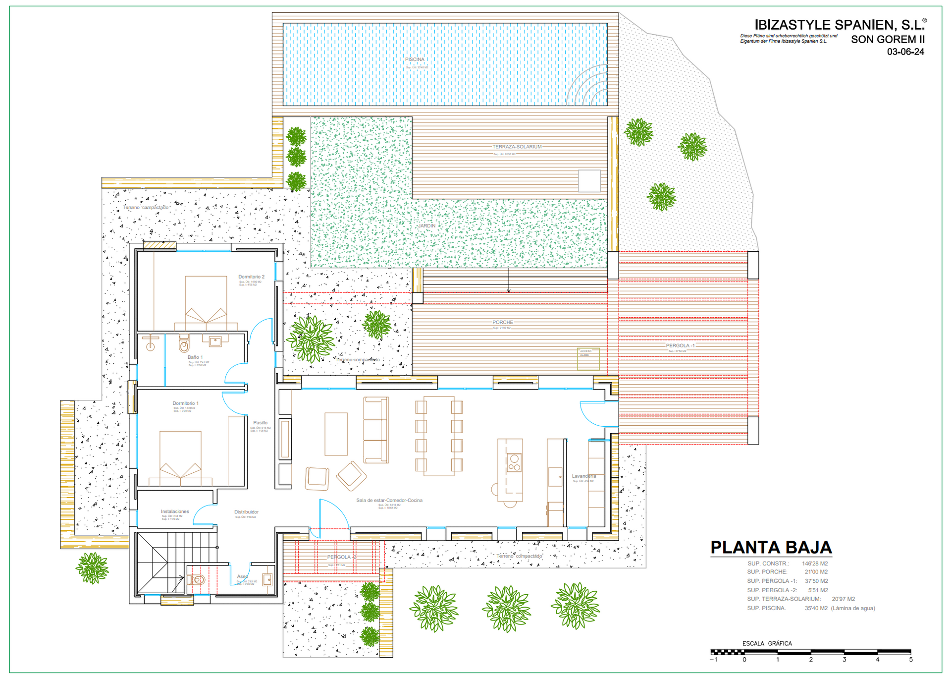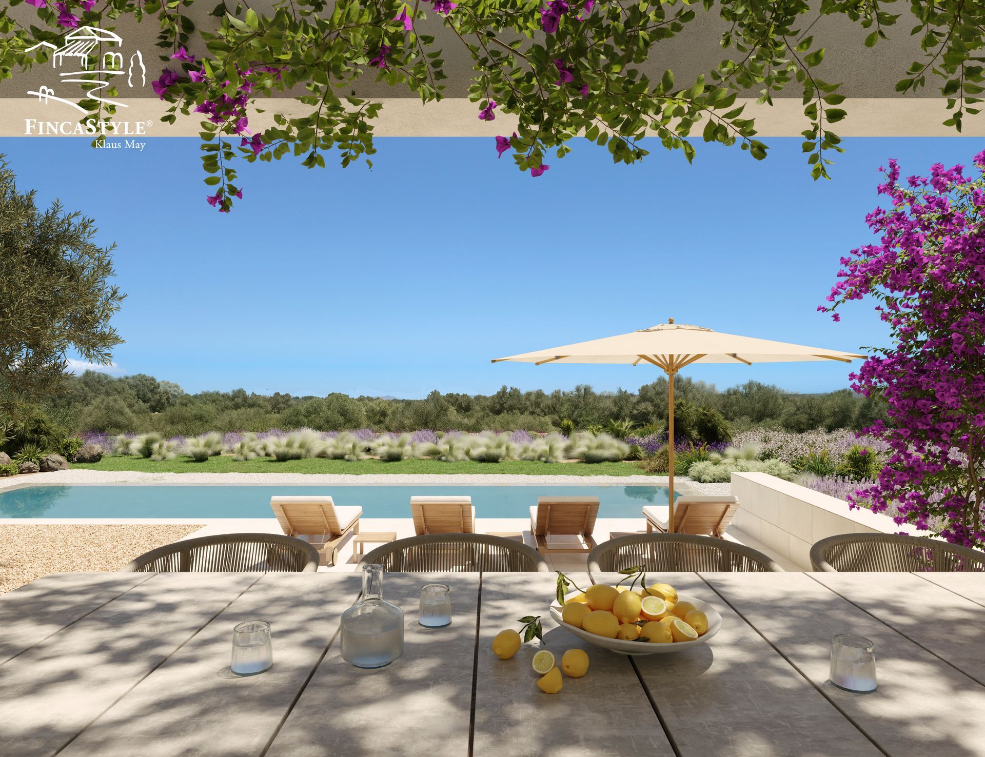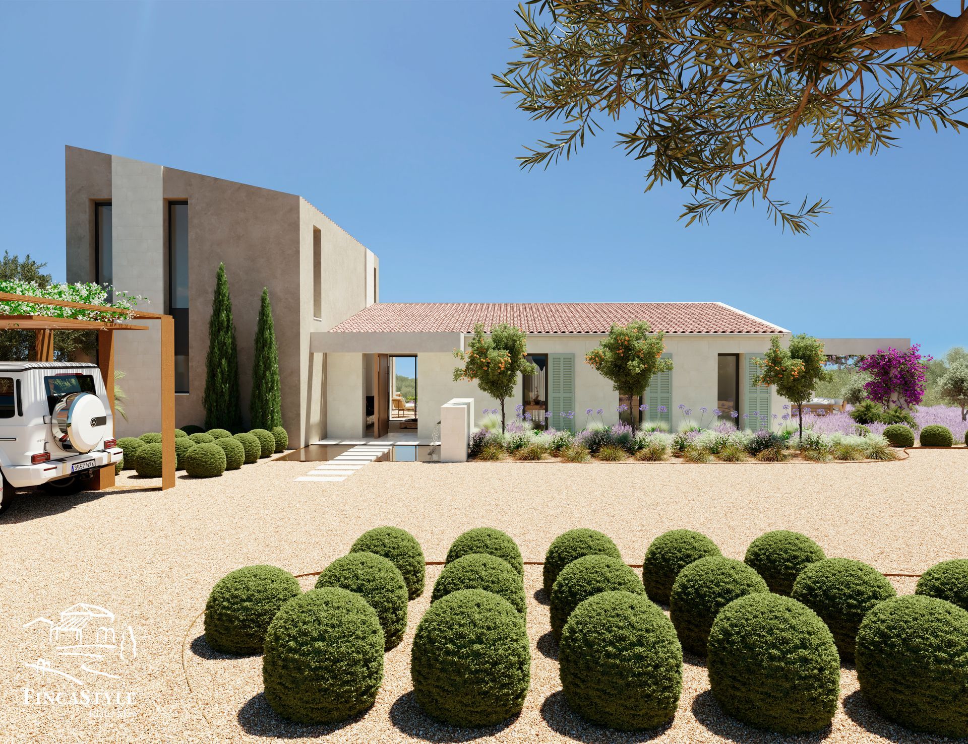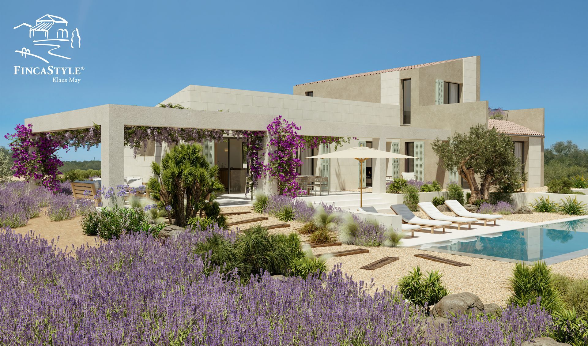 Ausgestattet in State of the Art, Solar, zentrale Klimaanlage und Fußbodenheizung mit Einzelraumsteuerung, Domotiksystem, LED-Lichtkonzepte, beheizter Salzinfinitypool, Einbauschränke, Videoüberwachung, Alarmanlage, Wärmepumpen, Natursteinwände, Aussenmallorquinas, Carport für 2 Autos, private lange Zufahrt und Gartengestaltung, machen dieses Fincastyle® Ensemble zu einer einzigartigen zeitlosen Traumfinca. Modernste nachhaltige Architektur versteht sich bei Fincastyle®.