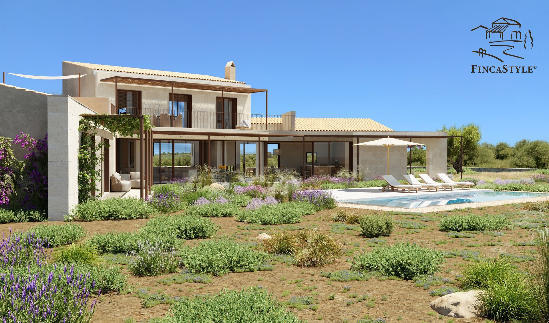 Ausgestattet in State of the Art, Solar, zentrale Klimaanlage und Fußbodenheizung mit Einzelraumsteuerung, Domotiksystem, LED-Lichtkonzepte, beheizter Salzinfinitypool, Einbauschränke, Videoüberwachung, Alarmanlage, Wärmepumpen, Natursteinwände, Aussenmallorquinas, Carport für 2 Autos, private lange Zufahrt und Gartengestaltung, machen dieses Fincastyle® Ensemble zu einer einzigartigen zeitlosen Traumfinca. Modernste nachhaltige Architektur versteht sich bei Fincastyle®.