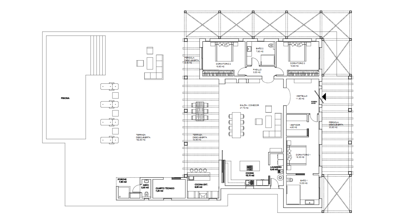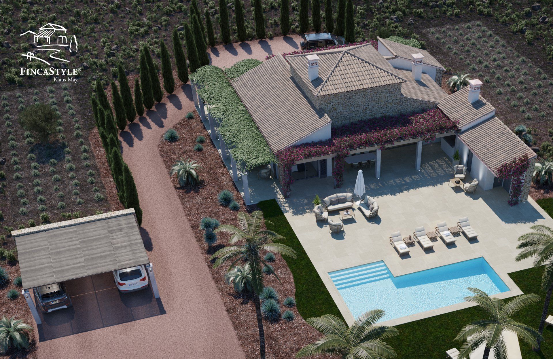 Perfekt ergänzt wird dieses Fincastyle® Projekt durch einen Salzinfinitypool von 10 Meter Länge, Gäste-WC und einen Technikraum, sowie einem Carport.